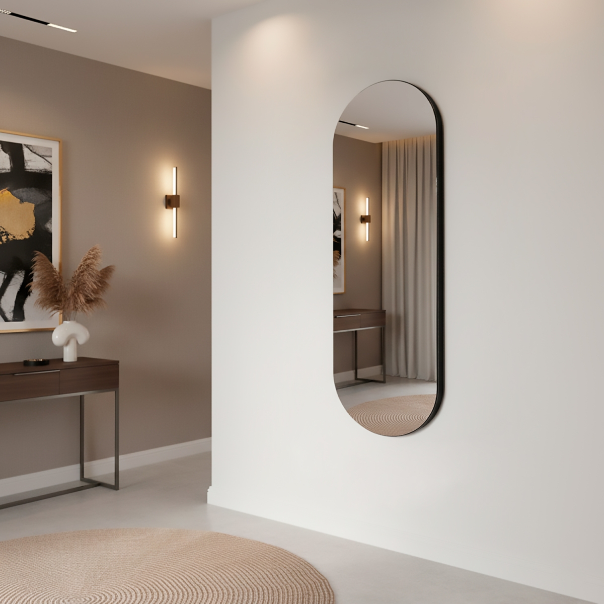 Espelho de Chão Doha 160x50cm OblongoO Espelho de Chão Doha Oblongo é uma peça de destaque que une elegância e funcionalidade em um design minimalista e contemporâneo. Ideal para ambientes sofisticados, ele amplia a sensação de espaço e luminosidade, transformando qualquer ambiente em um cenário digno de revista. Produzido com espelho de alta performance, livre de cobre e solventes agressivos, oferece reflexo nítido e sem distorções, além de maior resistência à oxidação e durabilidade superior. O modelo acompanha penduradores verticais e horizontais, nivelador e kit de fixação completo (buchas e parafusos), permitindo que seja utilizado tanto apoiado no chão quanto fixado na parede. A embalagem foi cuidadosamente desenvolvida com proteção anti-impacto, plástico bolha e caixa de madeira, assegurando máxima proteção durante o transporte. |