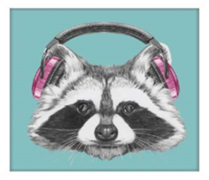 | O Quadro Decorativo Barcelona Guaxinim 30x30 cm, com moldura preta, apresenta uma ilustração estilizada de guaxinim, ideal para adicionar um toque moderno e urbano à decoração de salas e quartos. |